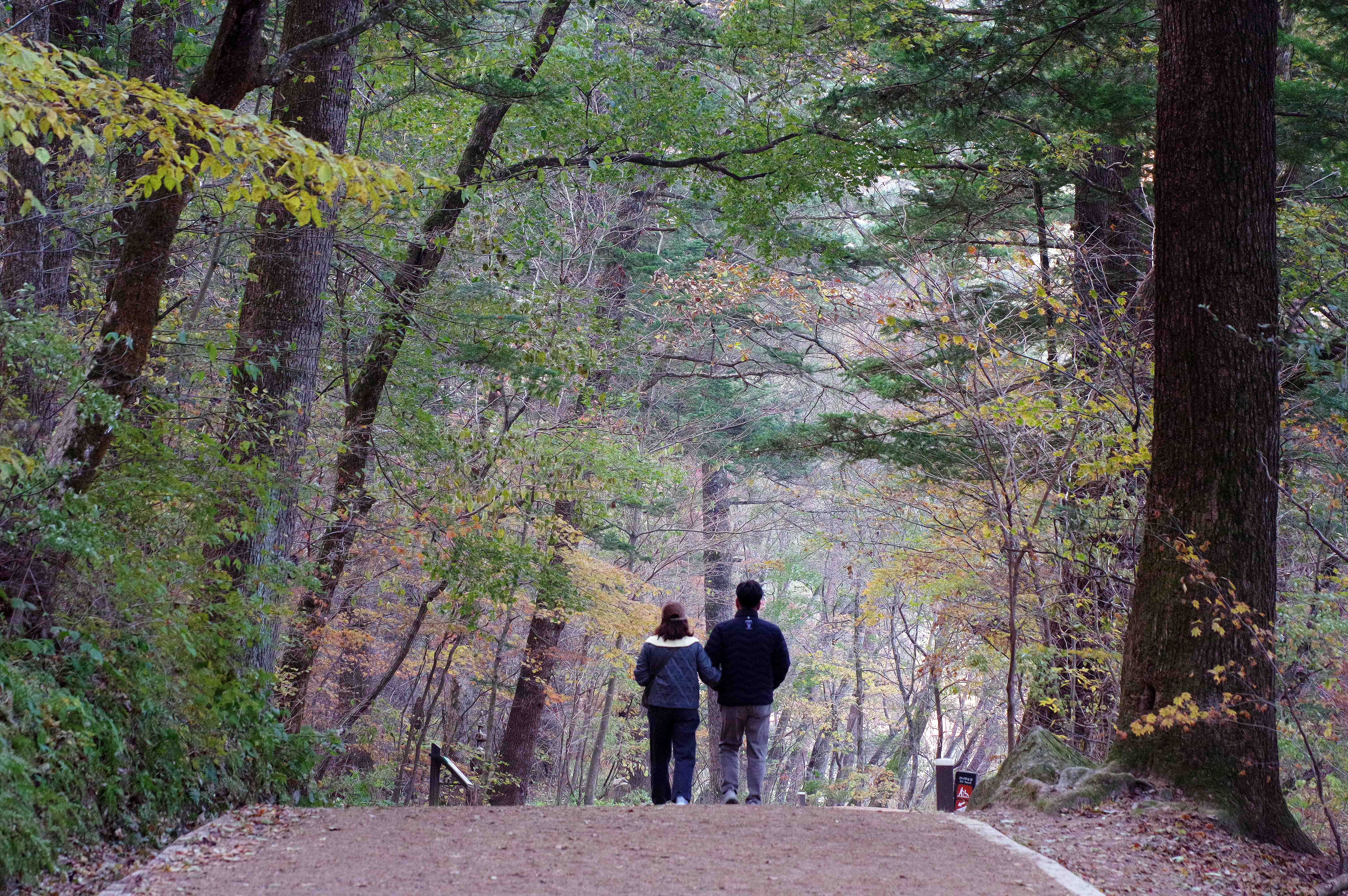 아침 산책을 전나무 숲길에서 하신다.