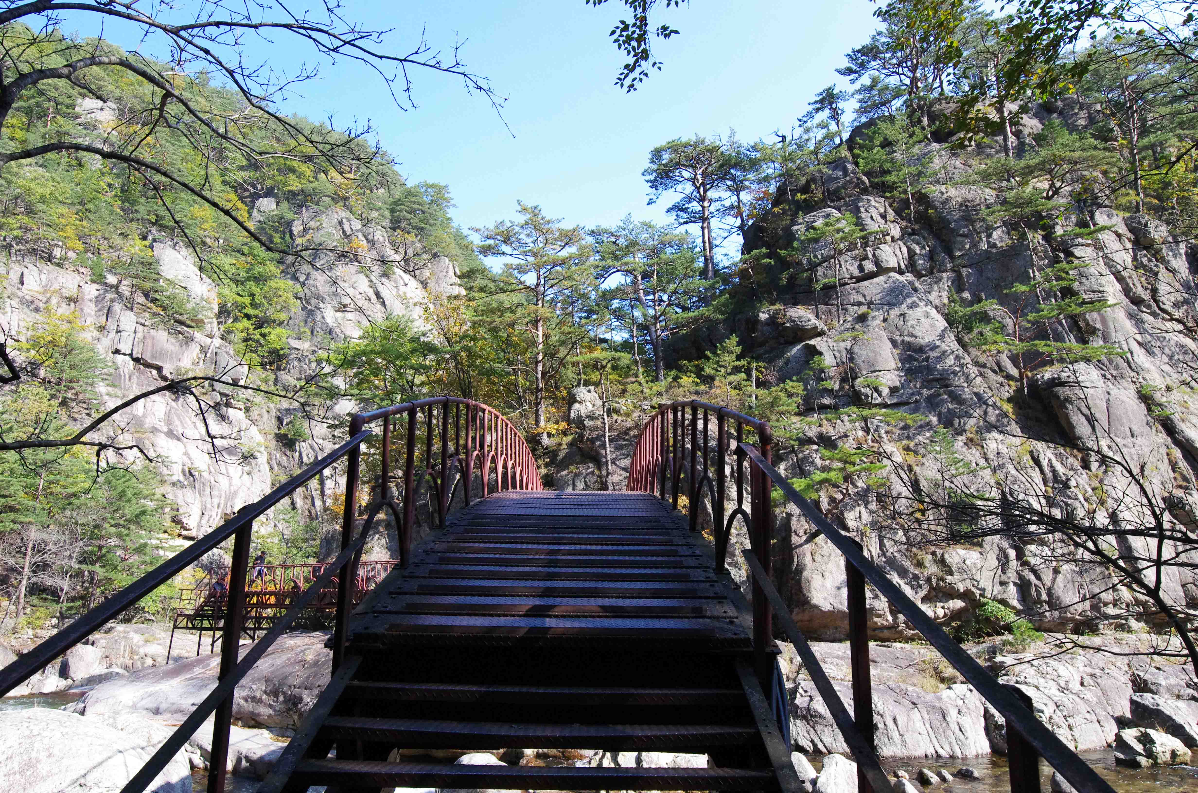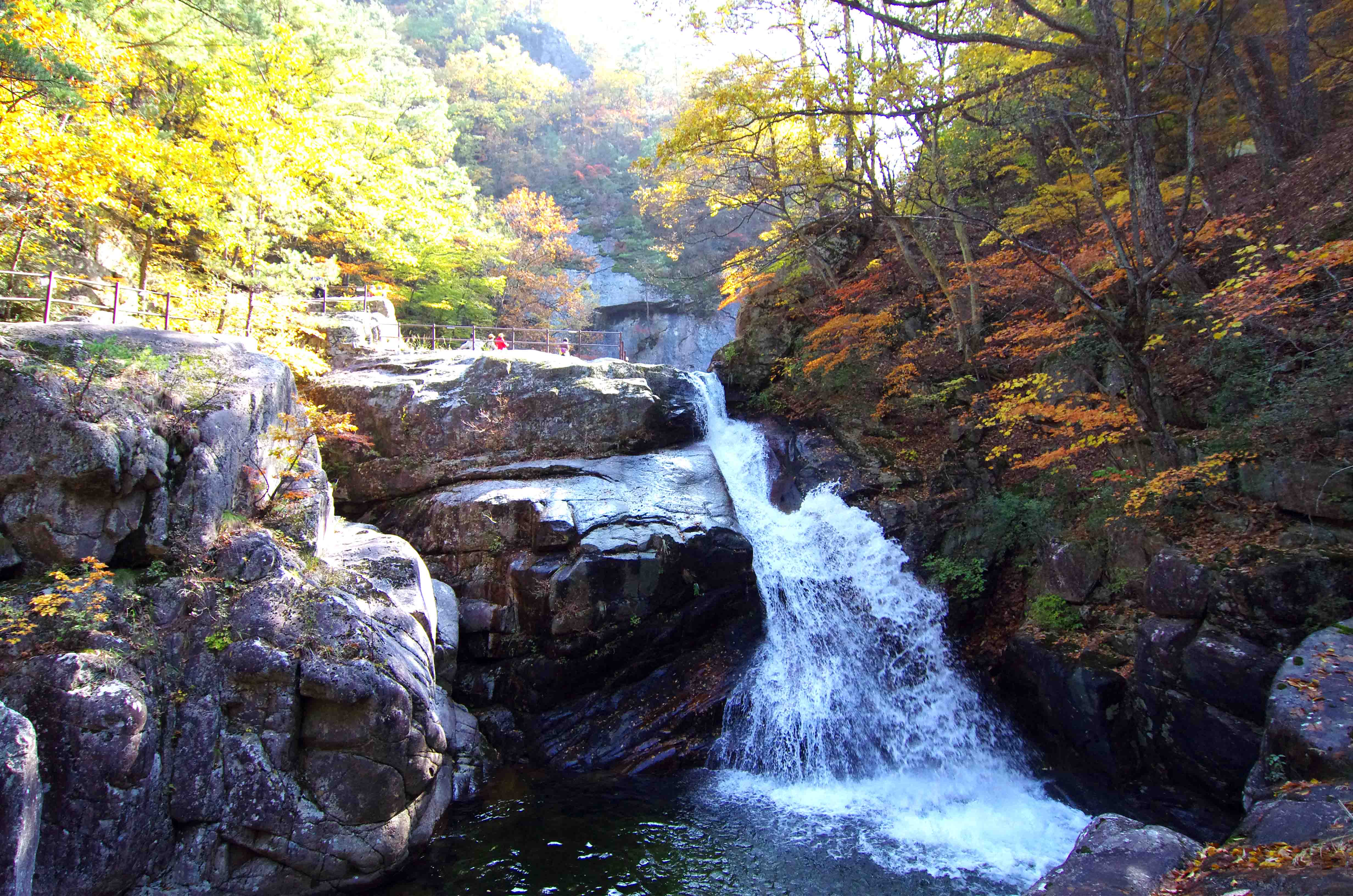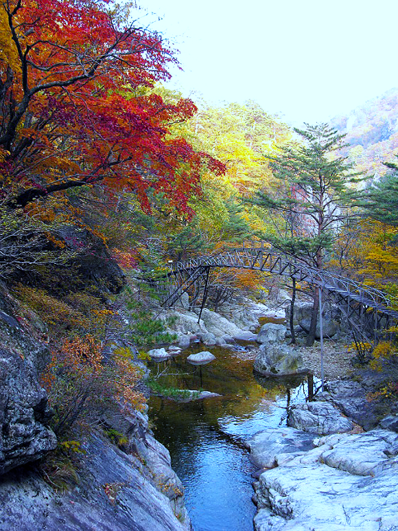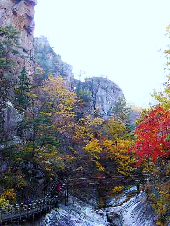 만물상 구룡폭포 윗쪽에는 단풍이 물들었다.