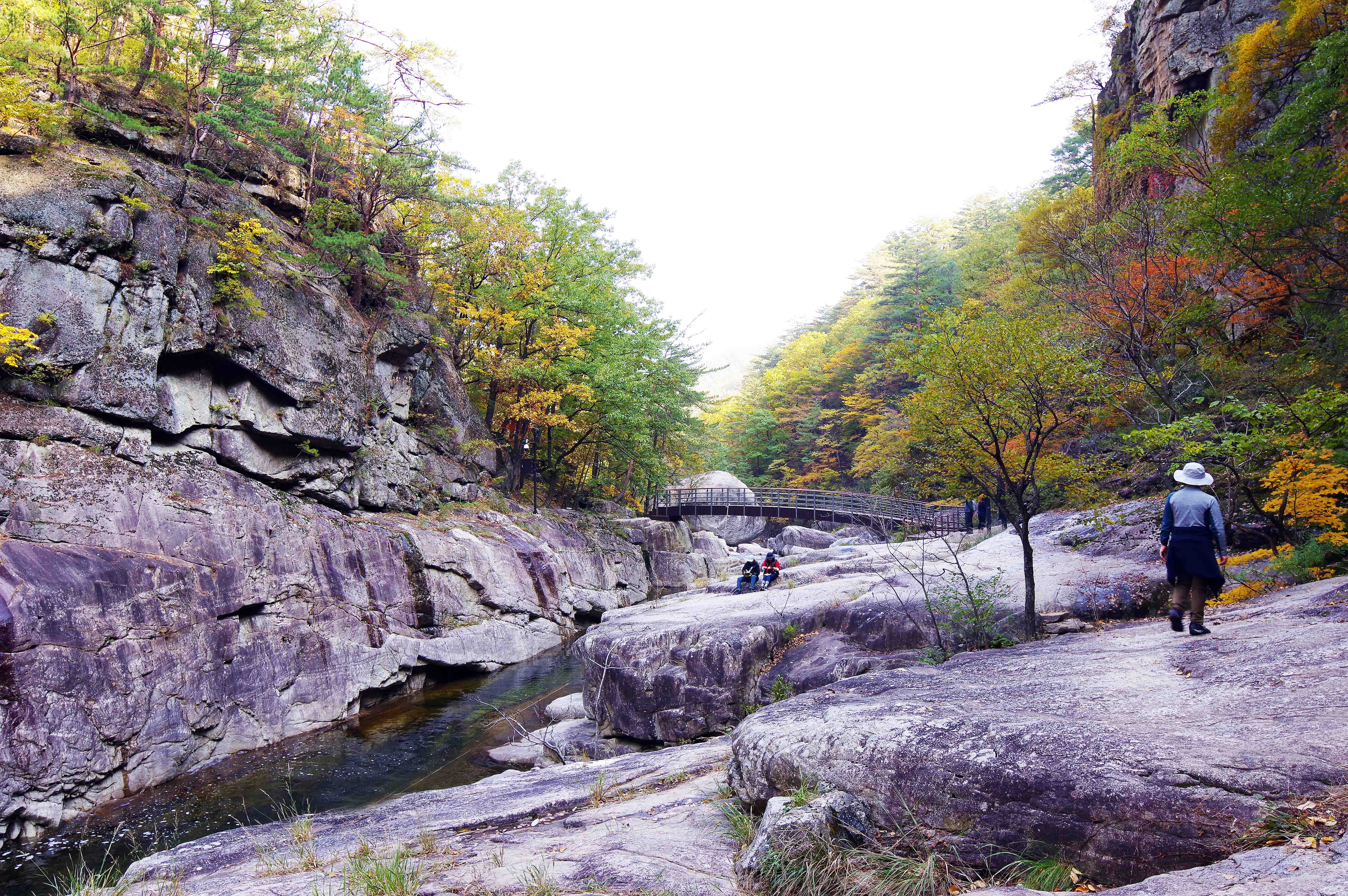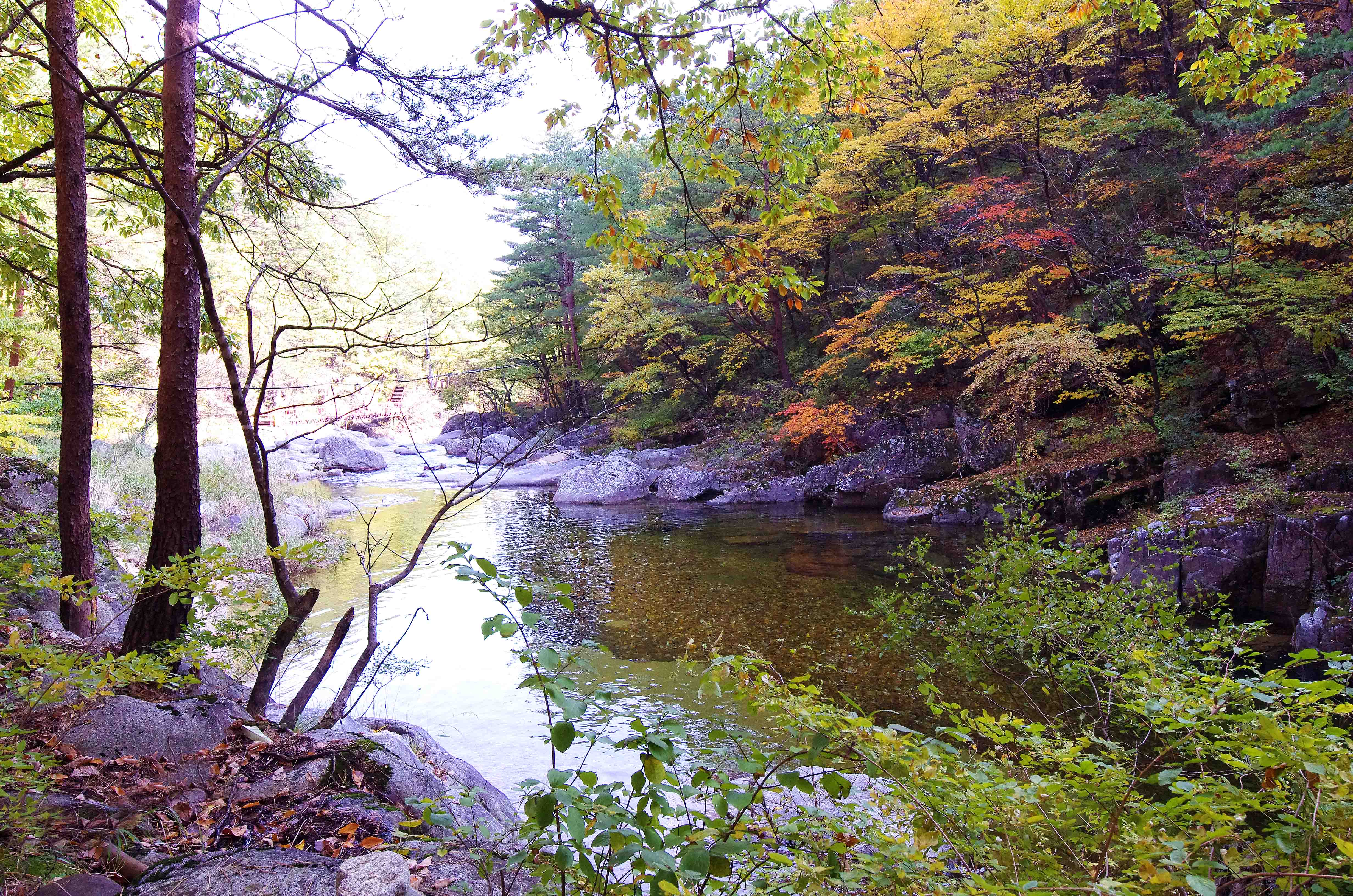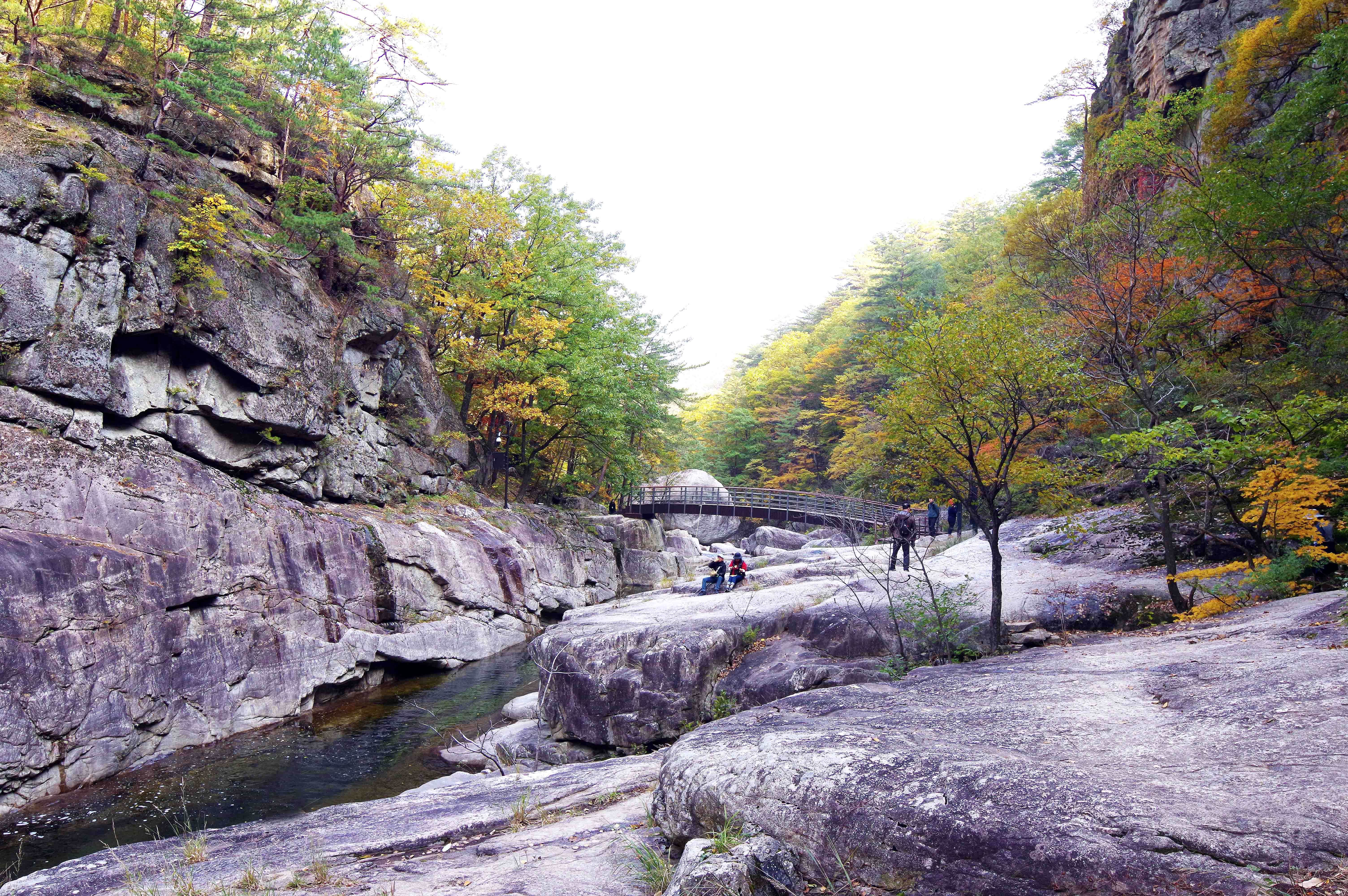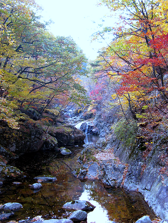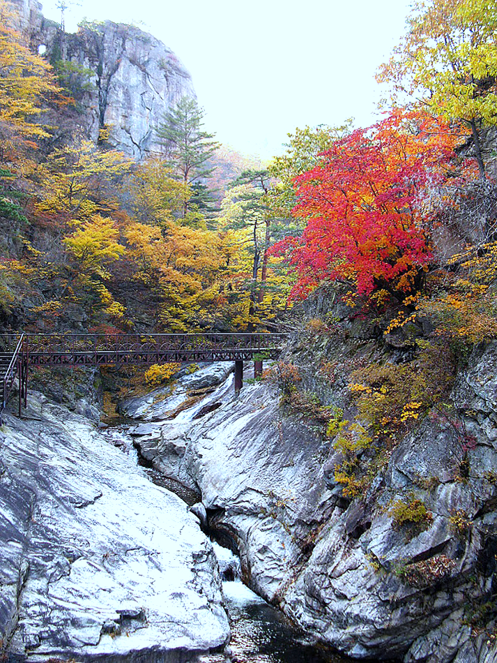 이제야 단풍이 든다.더구나 소금강 계곡은 협곡이라