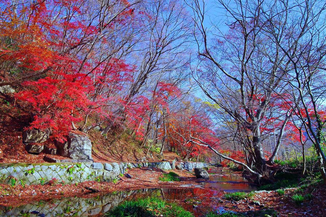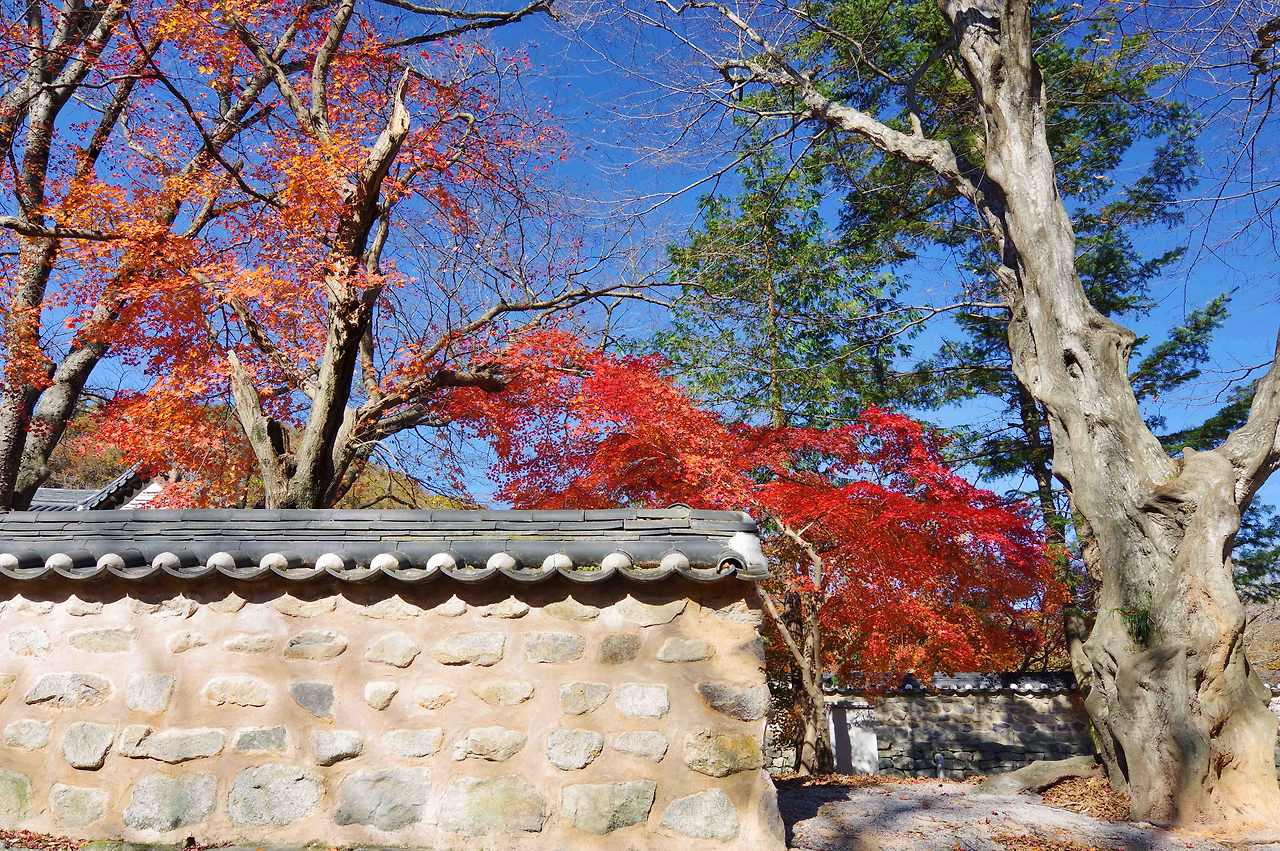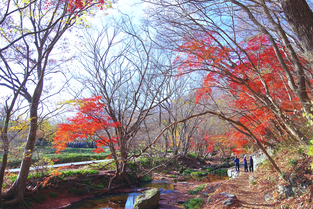 지나는 도솔천을 따라 끝자락 애기 단풍이